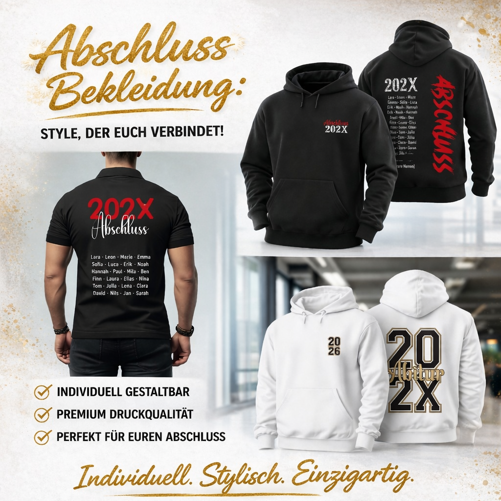 Bei uns bekommt eure Klasse nicht nur stylische Abschluss‑Hoodies, sondern auch echten persönlichen Service.